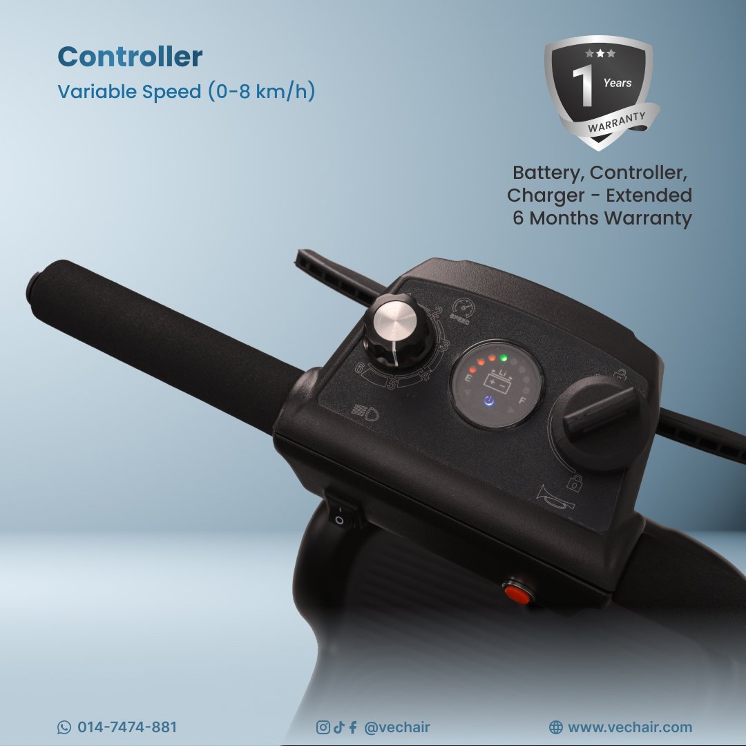 (1) ONE YEAR + (6) SIX MONTHS: Battery, Controller, Charger
